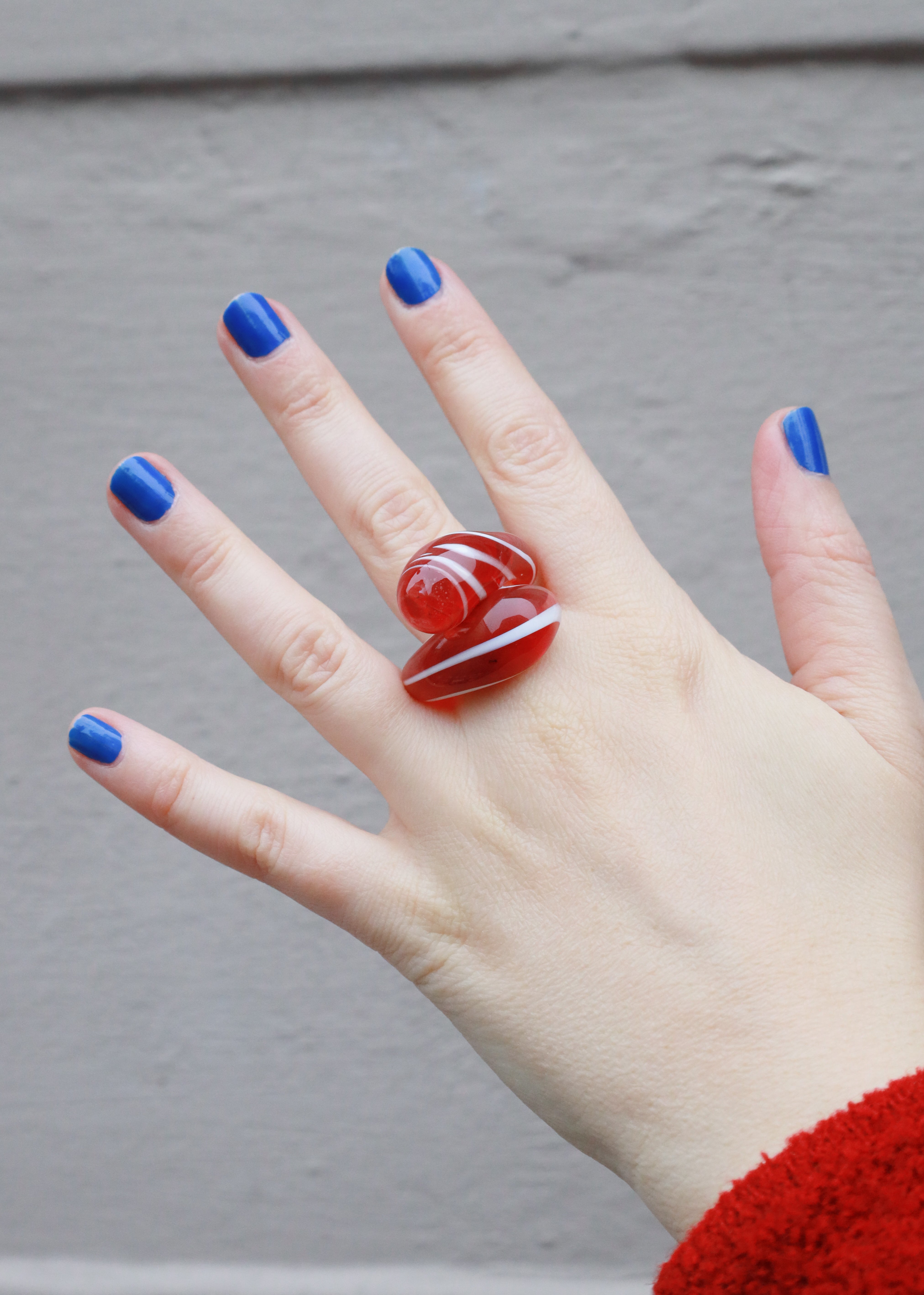 Glas ring - Two drops - Rød/hvid stribet