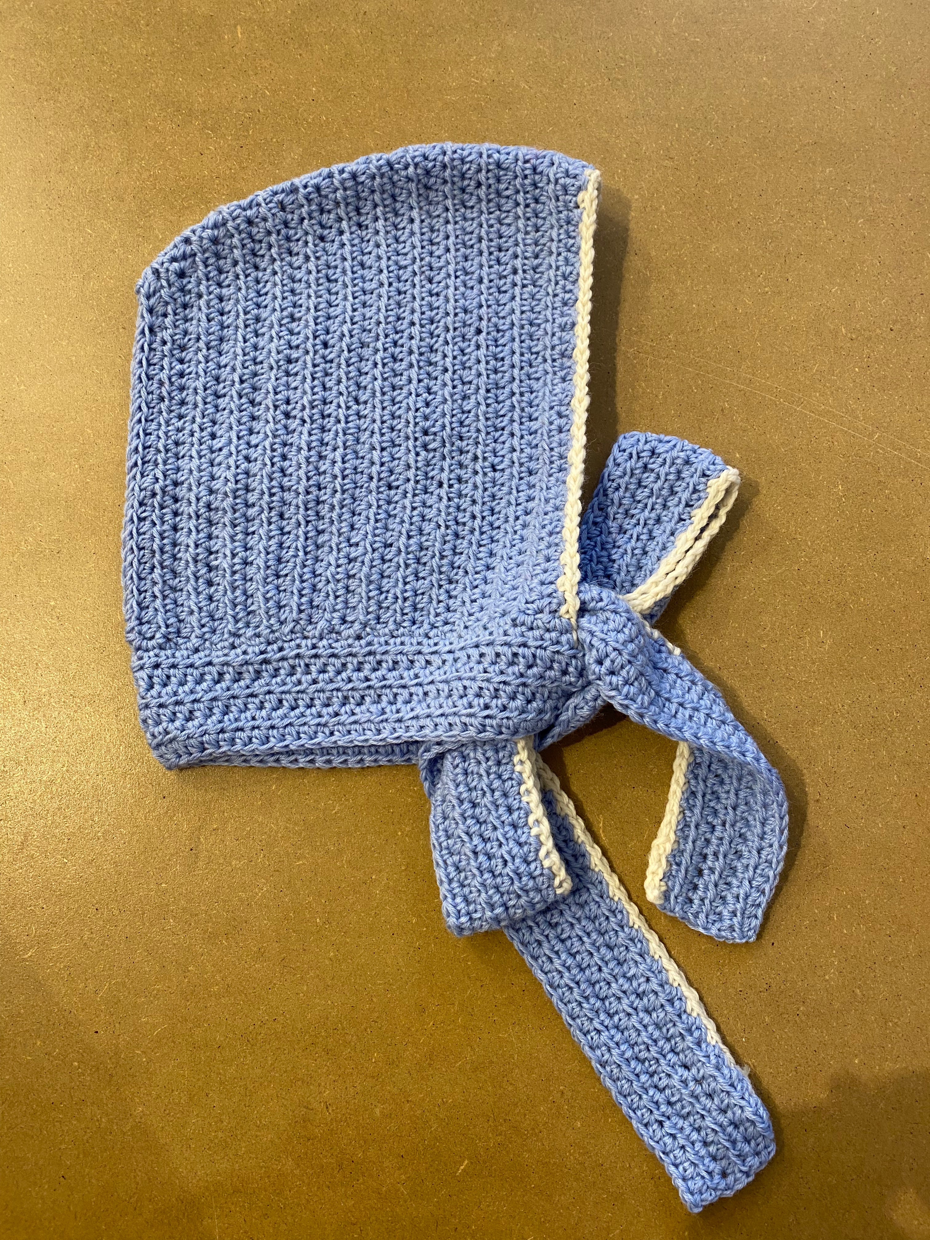 Bonnet hvid med blå kant
