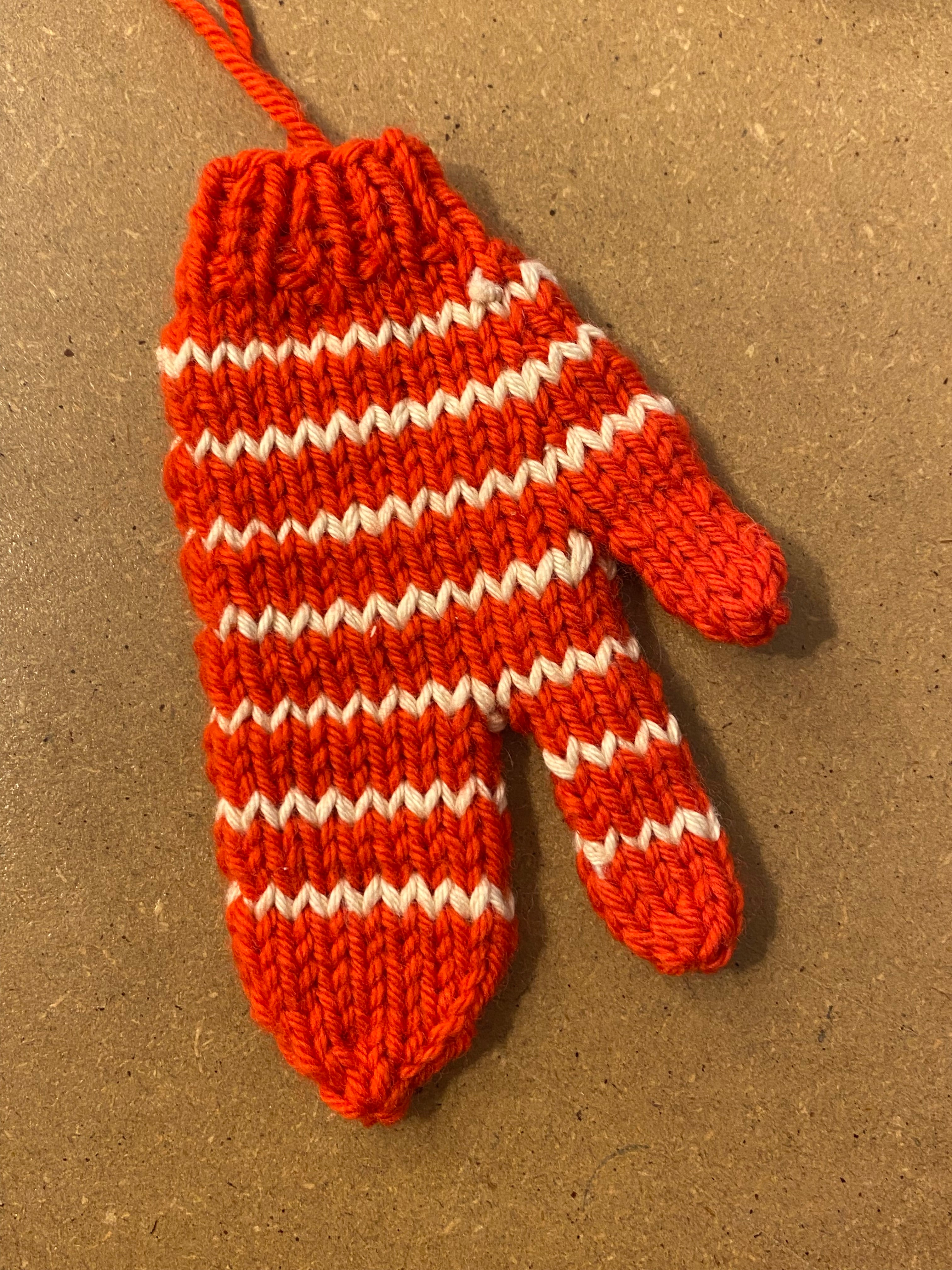 Strikket handske ophæng rødstribet