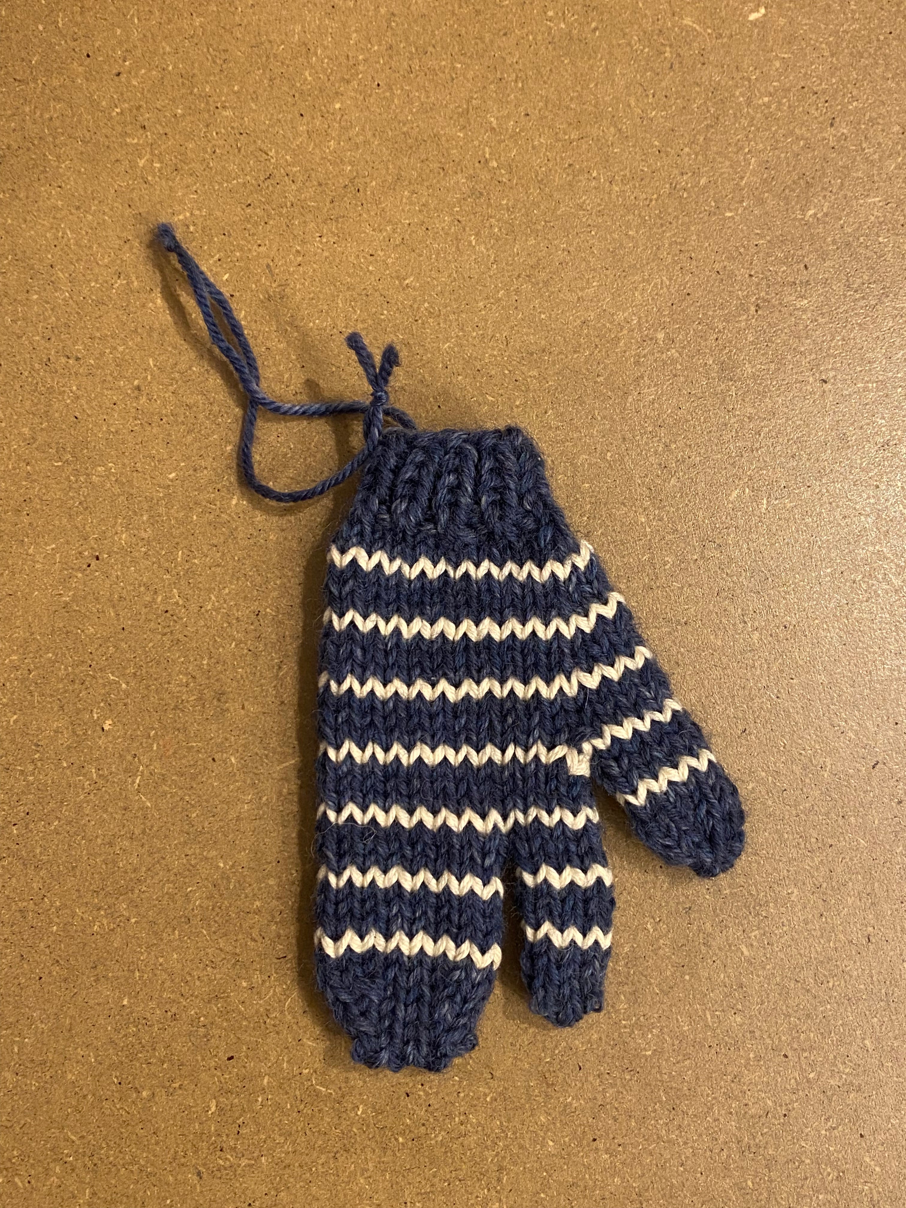 Strikket handske ophæng blåstribet