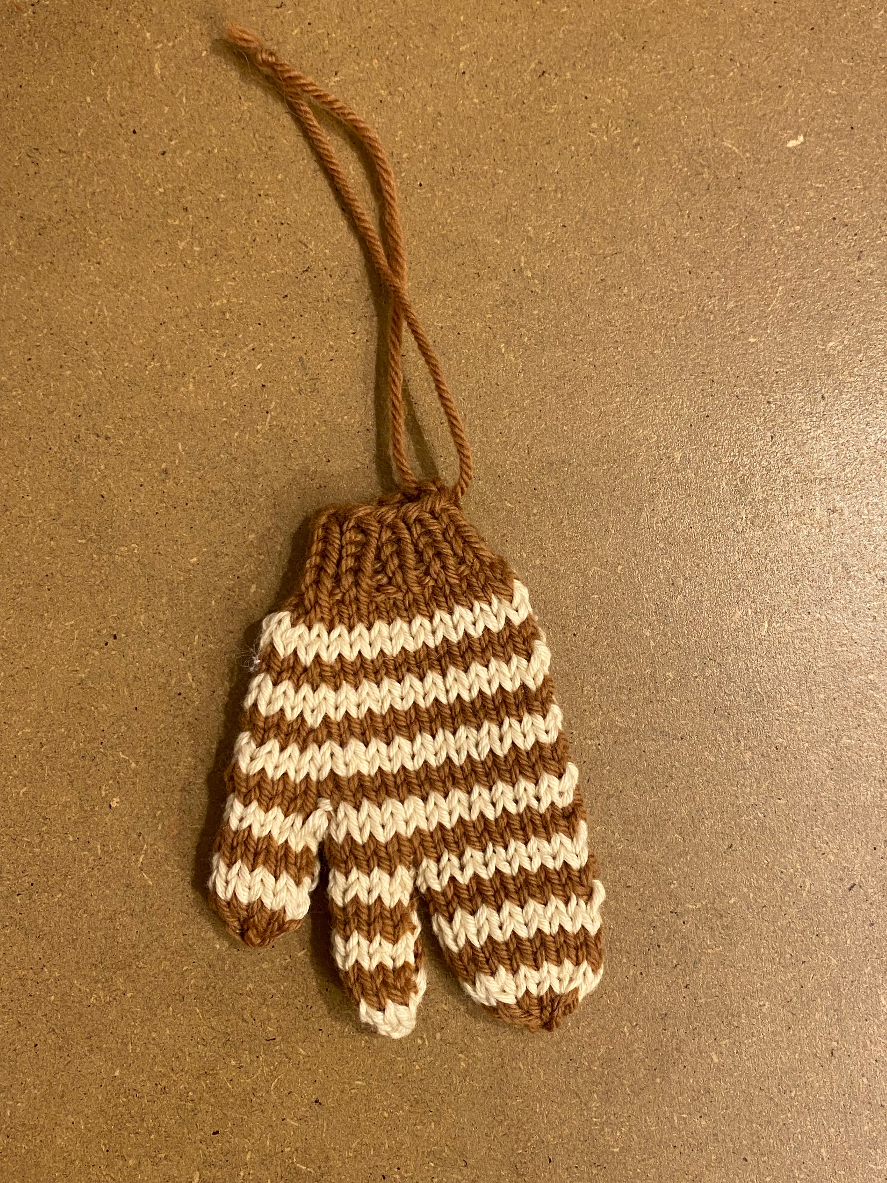 Strikket handske ophæng brun/hvid
