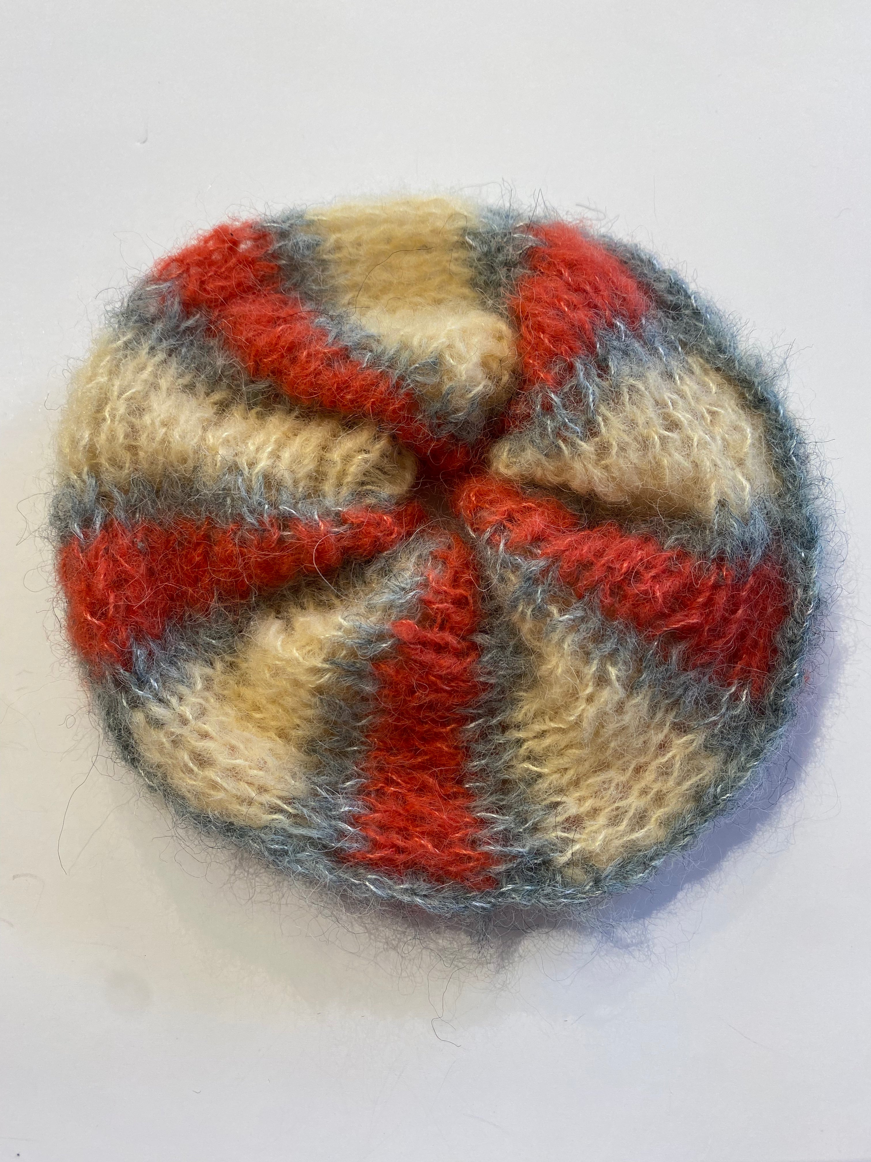 Håndlavet scrunchie / hårelastik i uld og mohairgarn med en solid elastik indeni.
