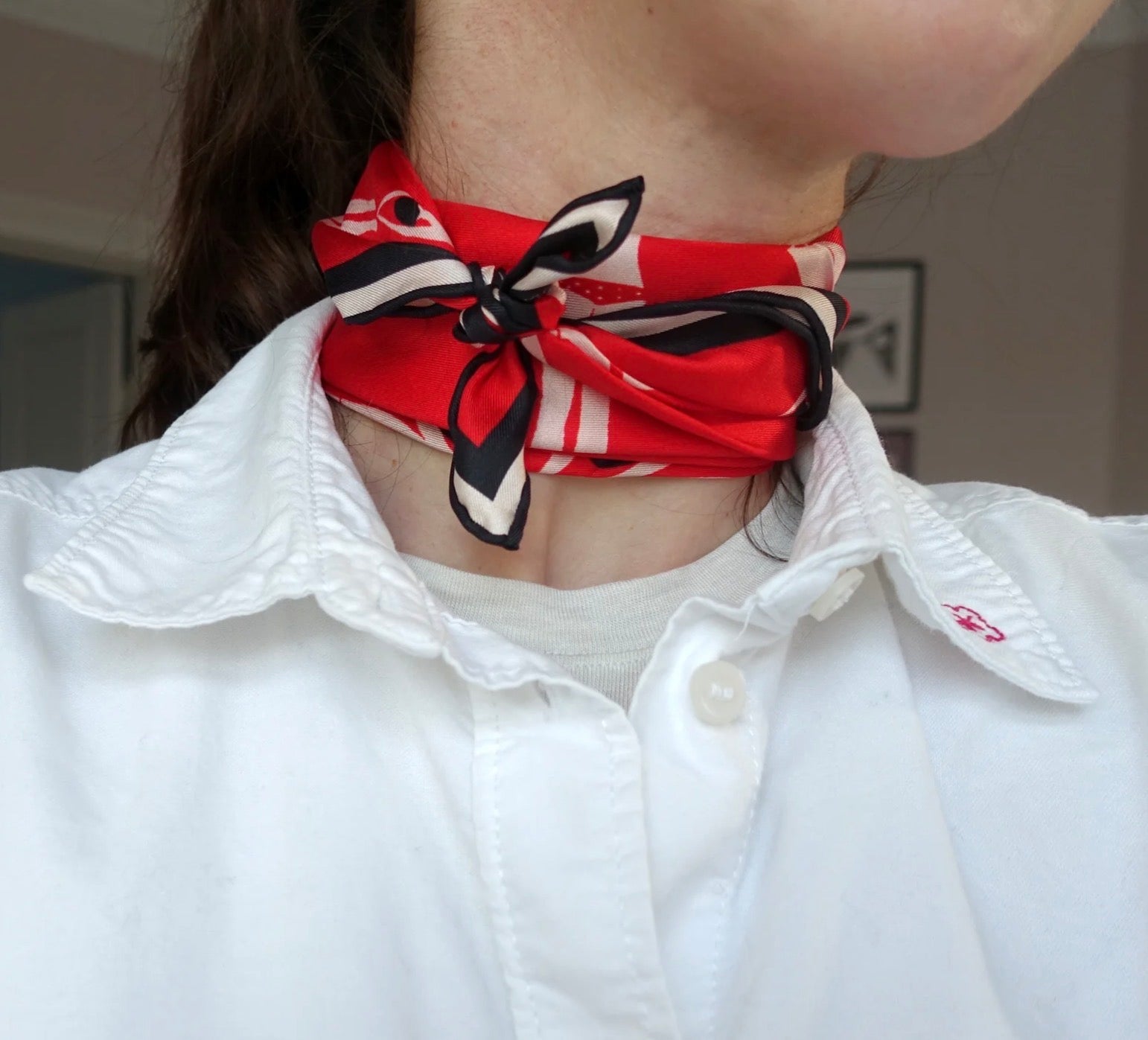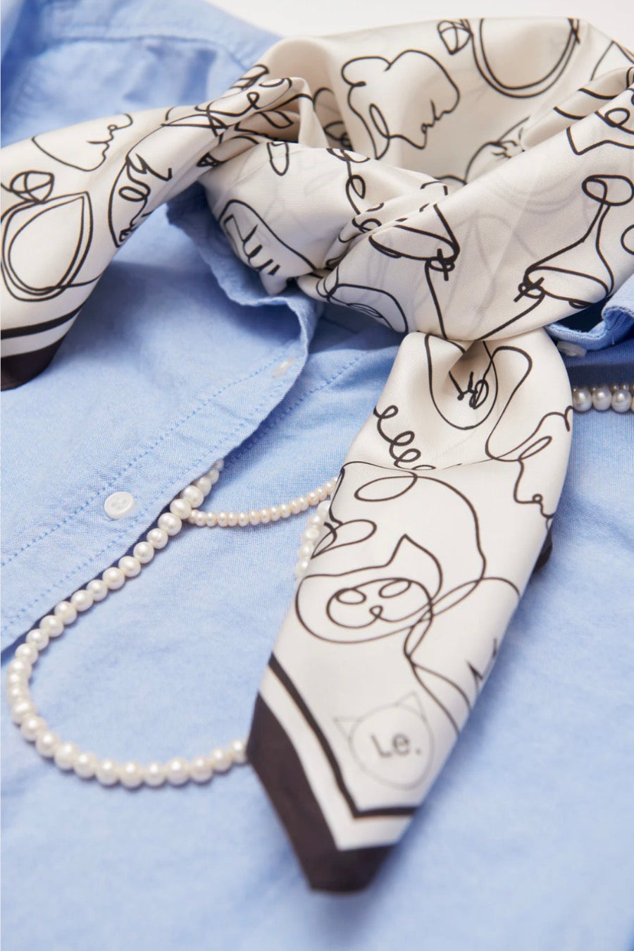 Tørklædet måler 50 x 50 cm og er printet på begge sider af det bløde 100% silke.