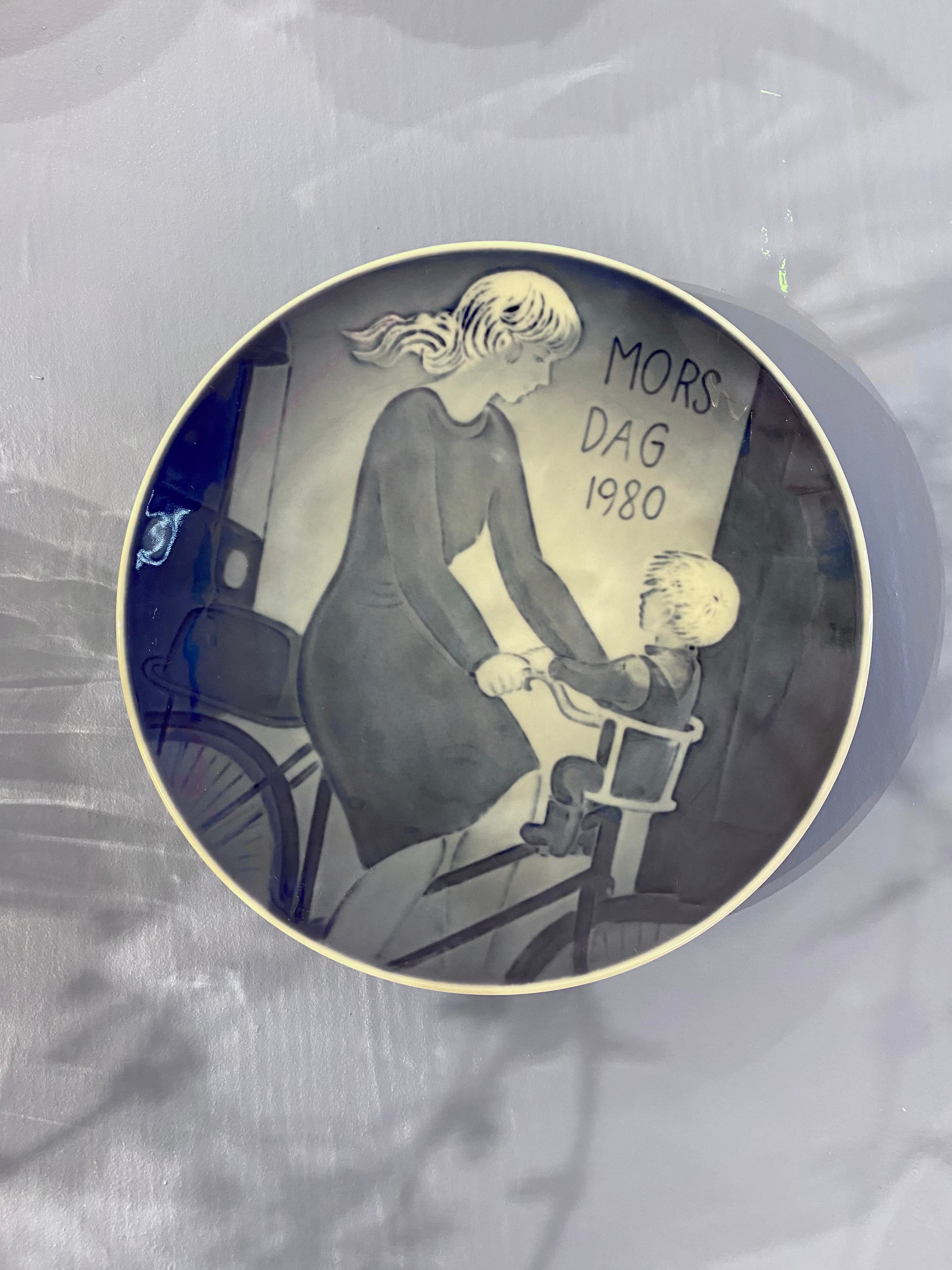 Royal Copenhagen mors dags platte 1980 med motiv af mor og barn på cykel er designet af Ib Spang Olsen og udført i underglasur. Dette er den trejde ud af fem platter i serien af Royal Copenhagen mors dags platter, hvor Ib Spang Olsen med sine berømte tegninger har fortolket moderrollen.