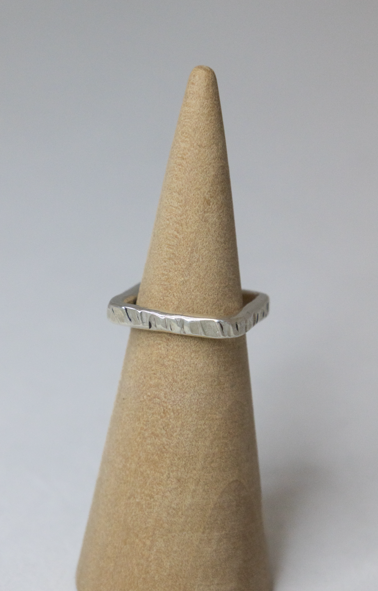 Firkantet hammerslået sølvring