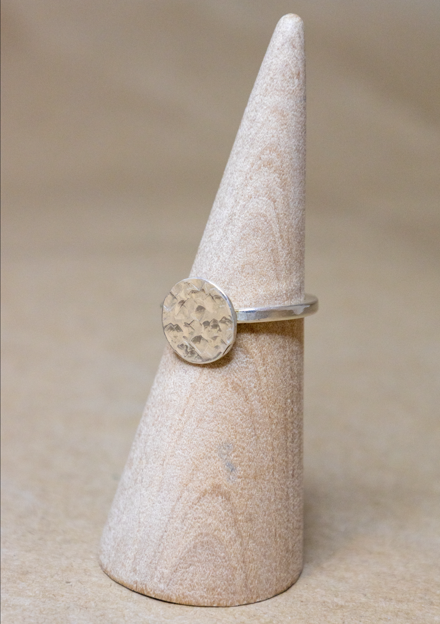 Sølvring med sølvplade. Pladen har hammerslået struktur.