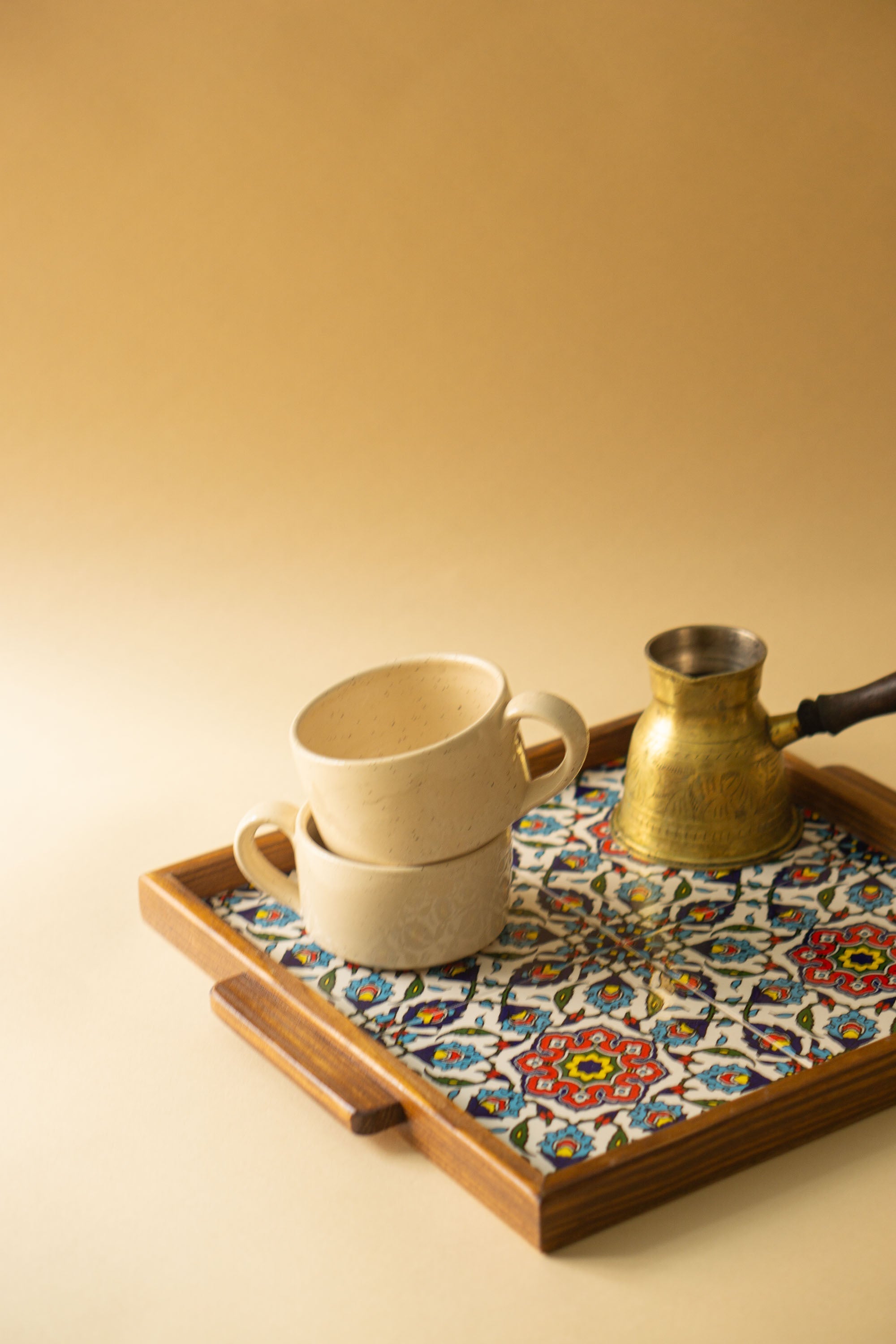 Drejet og glaseret i værksted i Palæstina og importeret i samarbejde med Bethlehem Fair Trade Artisans.