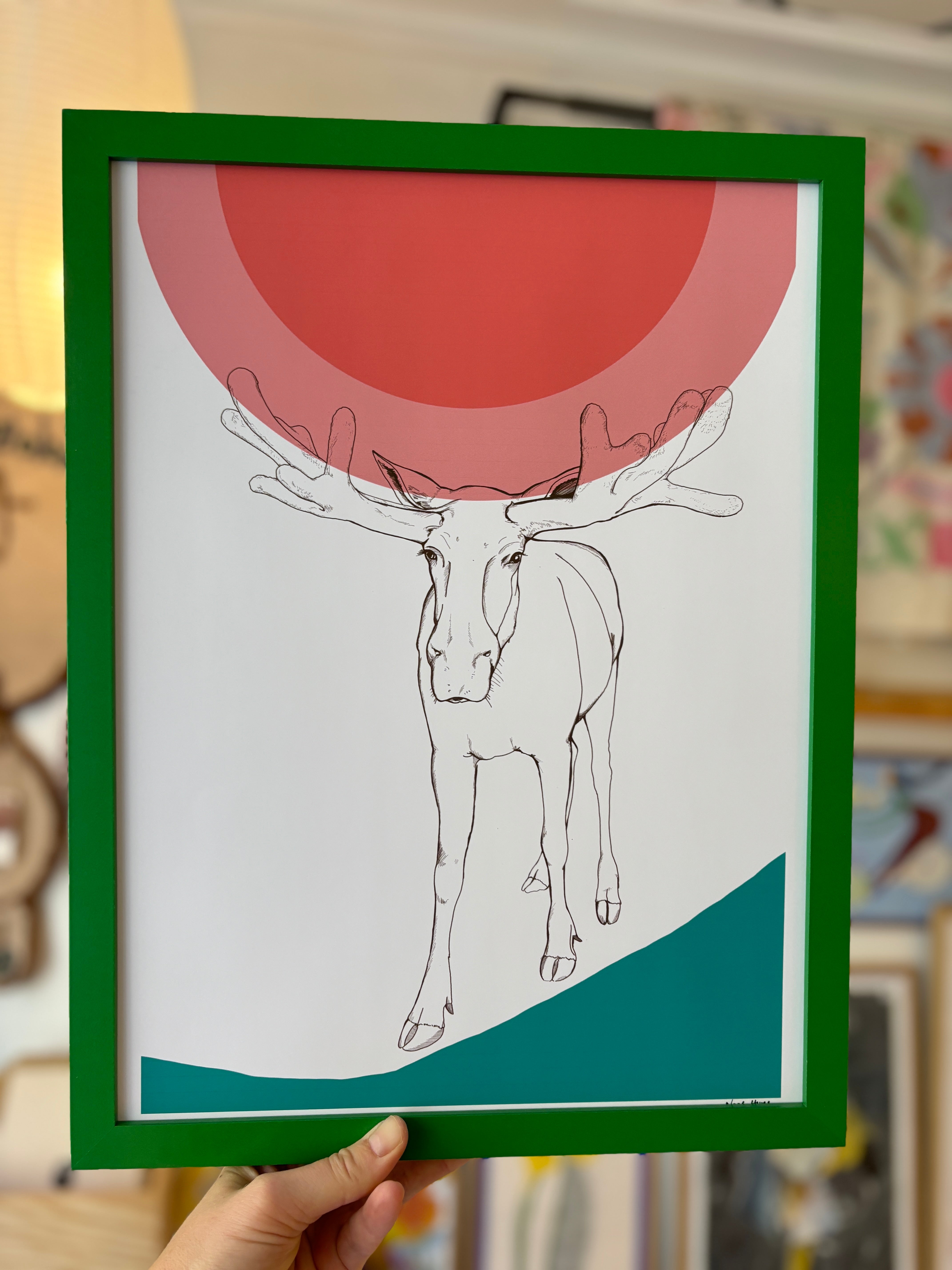 Elg - print - grøn ramme