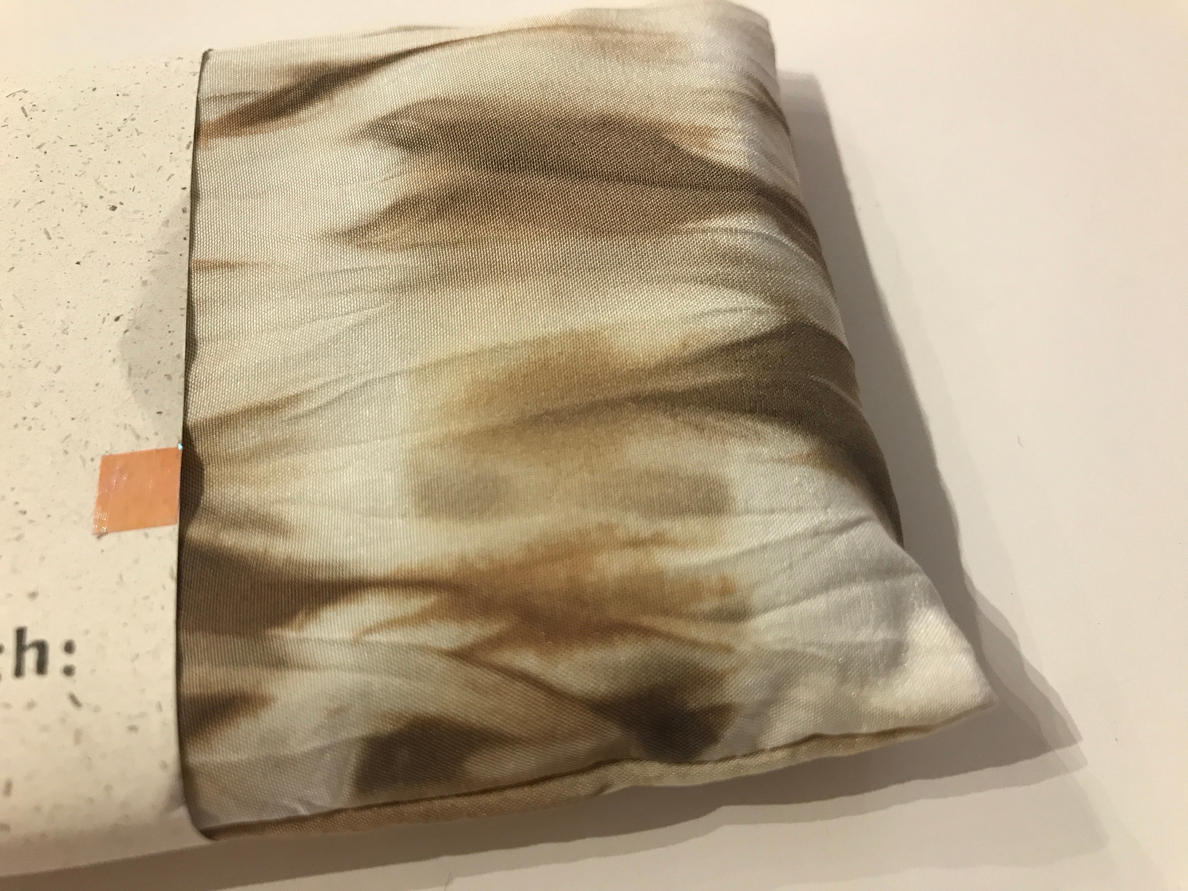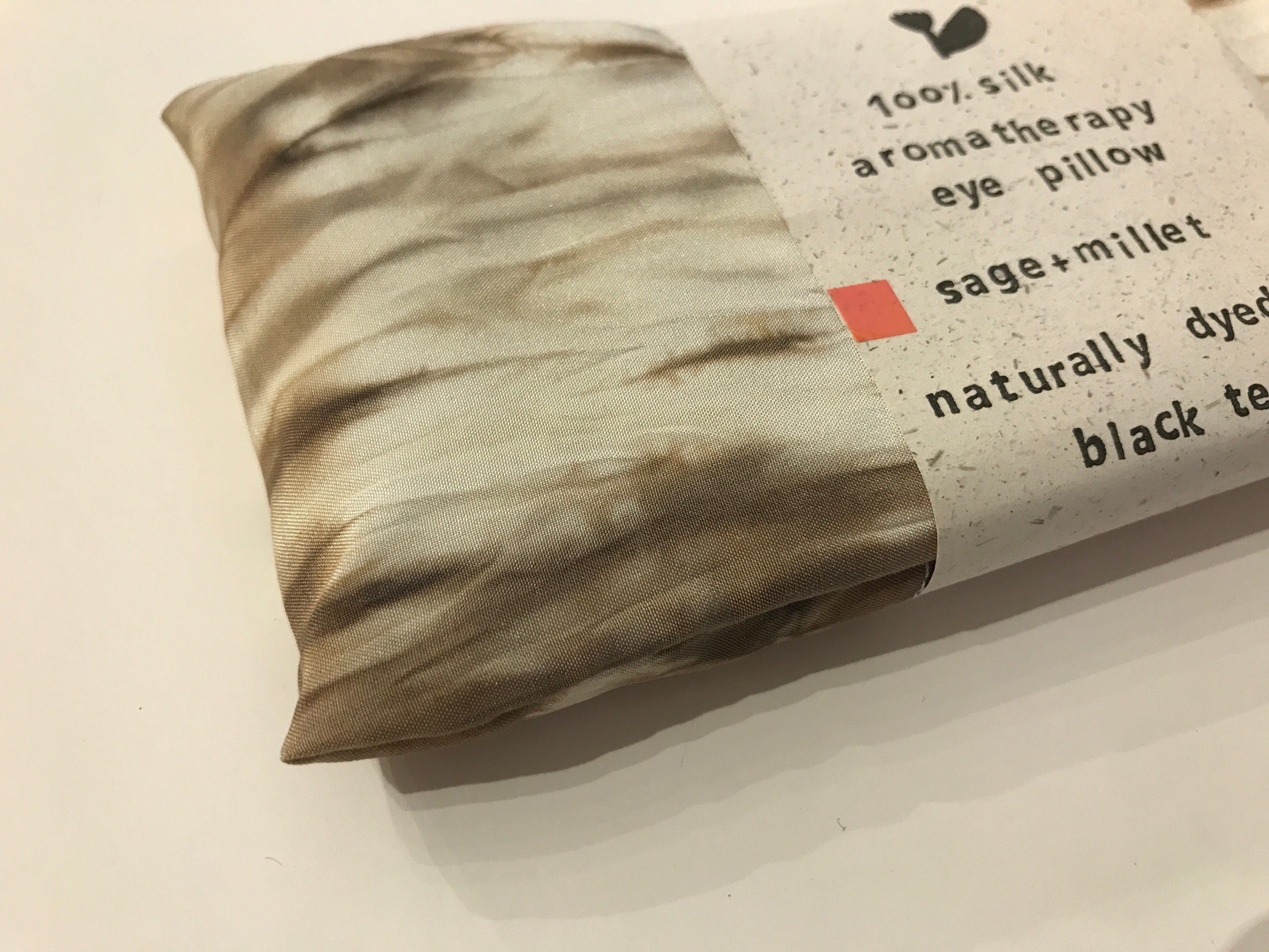 Silkeøjenpude naturligt farvet med planteekstrakter, blomster, pigmenter og andre organiske materialer, fyldt med økologisk salvie og hirse. Salvie er kendt for at reducere inflammation og stress, og forbedre humør og koncentration. Hirse er et ældgammelt korn, der i kombination med tørret salvie tilføjer en blød vægt til puden, så den komfortabelt kan tilpasse sig, hvor den placeres.