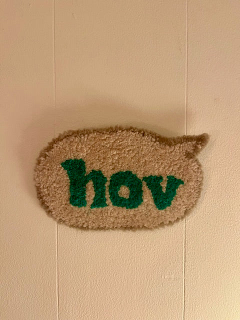 Tilføj humor og personlighed til dine vægge med denne håndlavede taleboble tuft med teksten “Hov”. Fanger opmærksomheden og skaber et sjovt blikfang.
