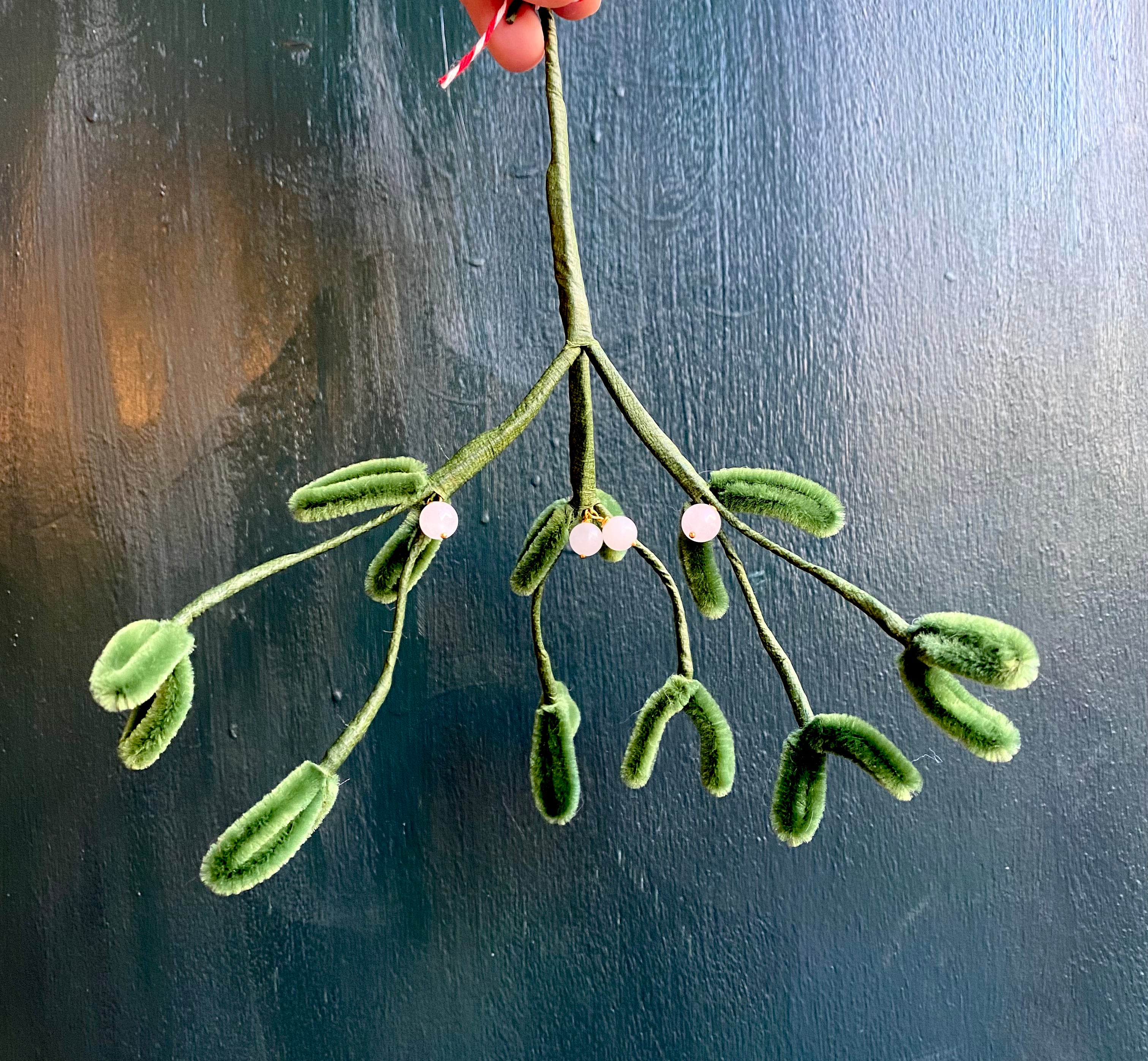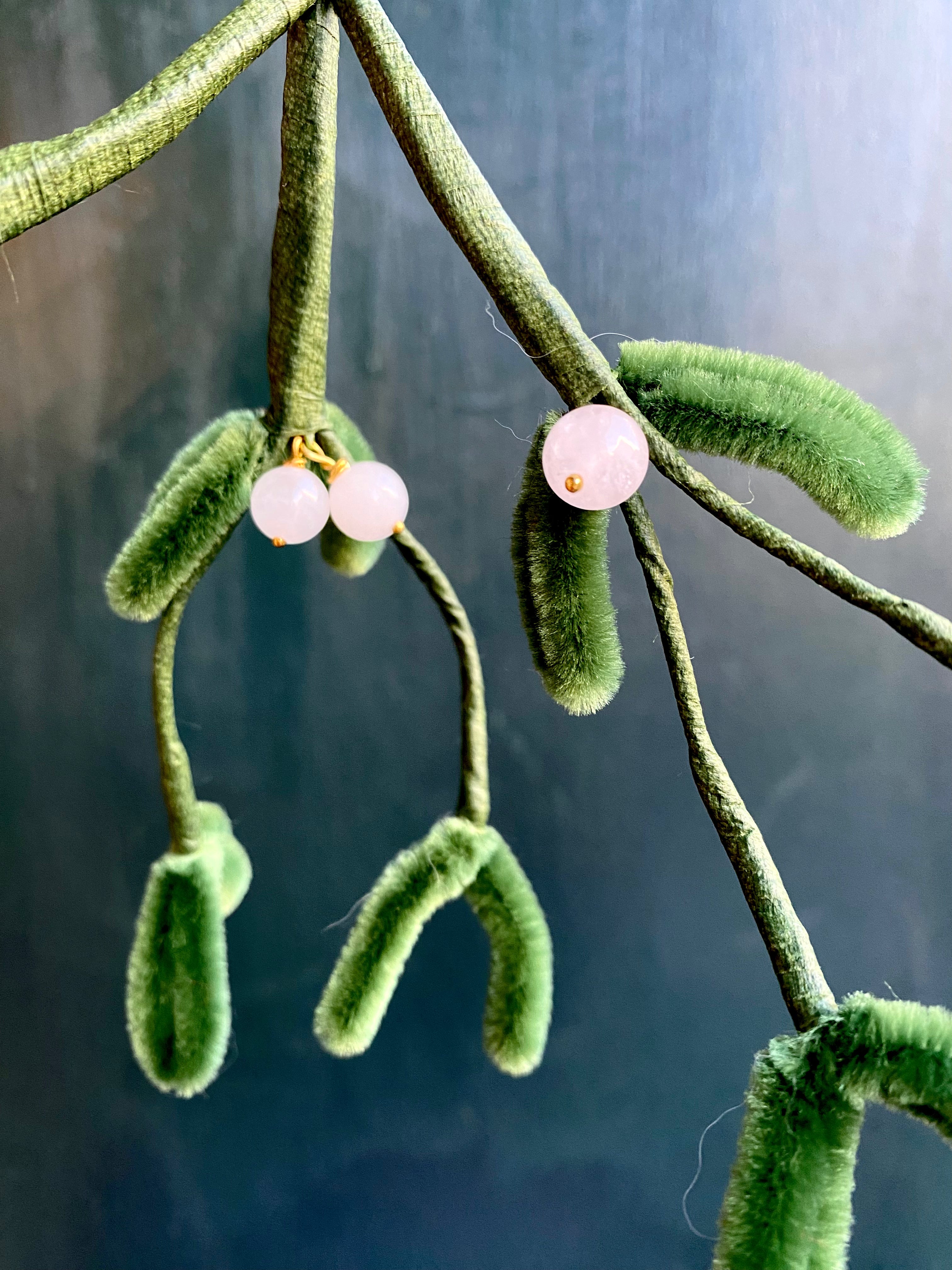 Misteltenens bær er krystaller i lys morganit og hvid jade.