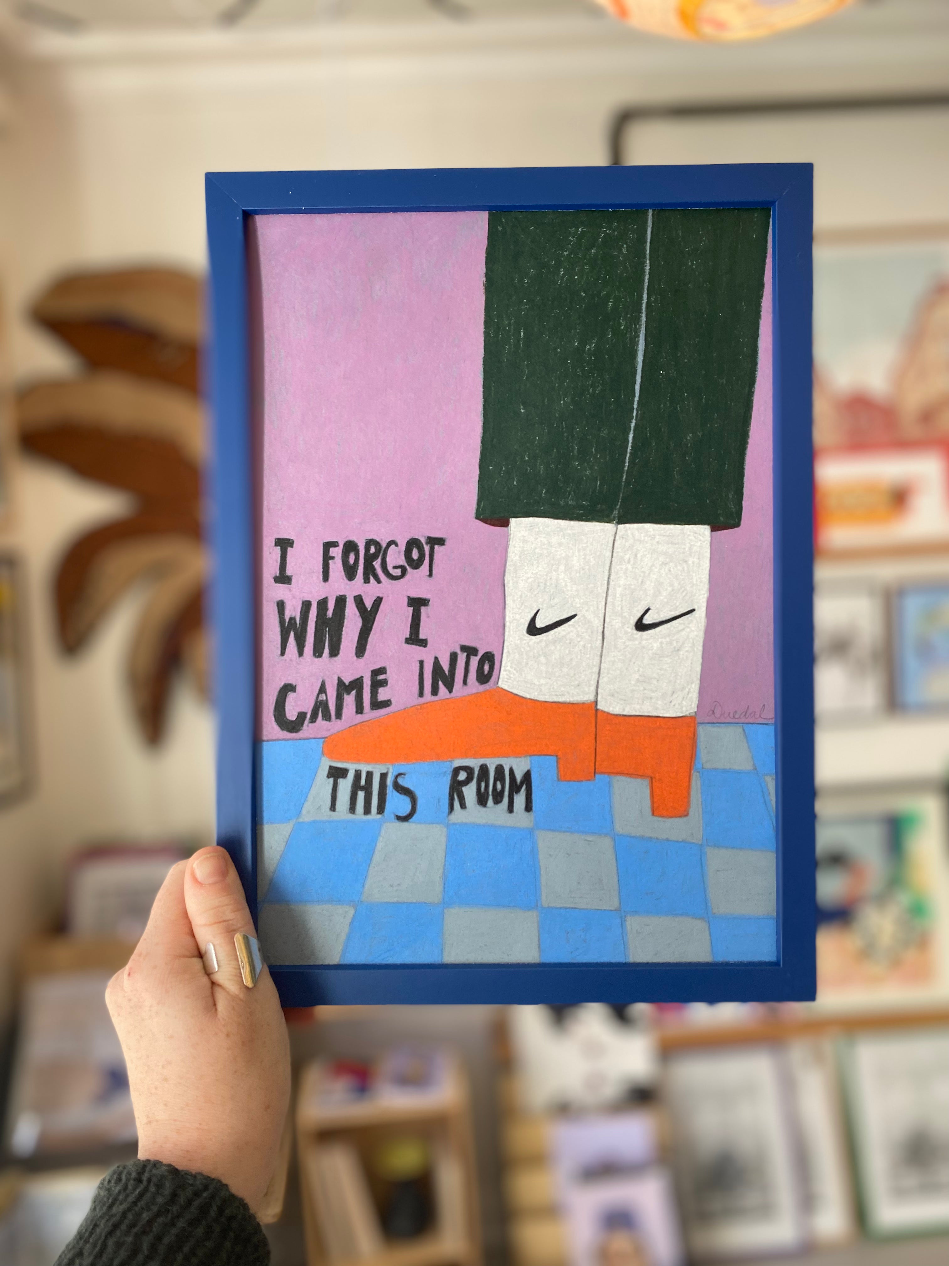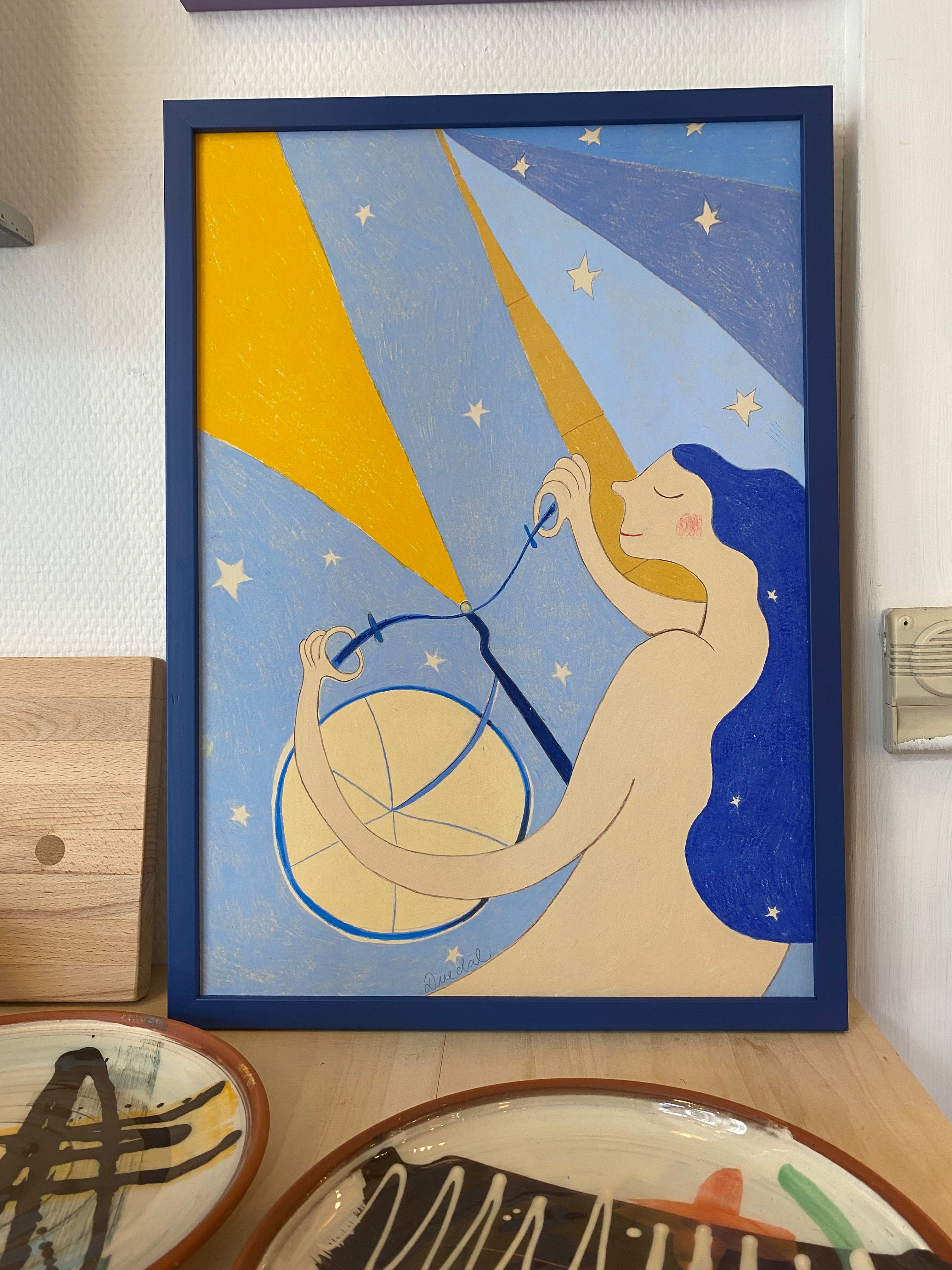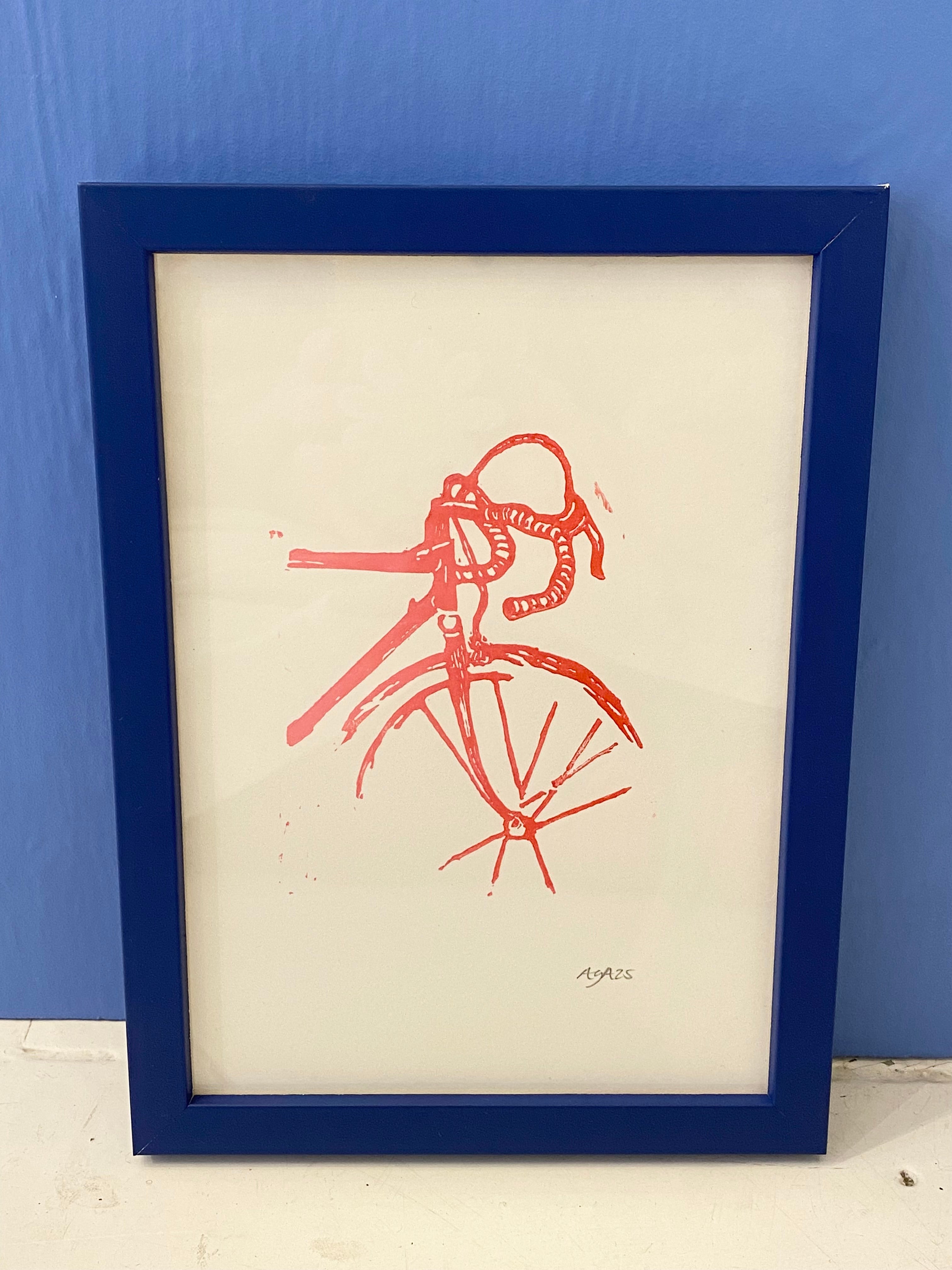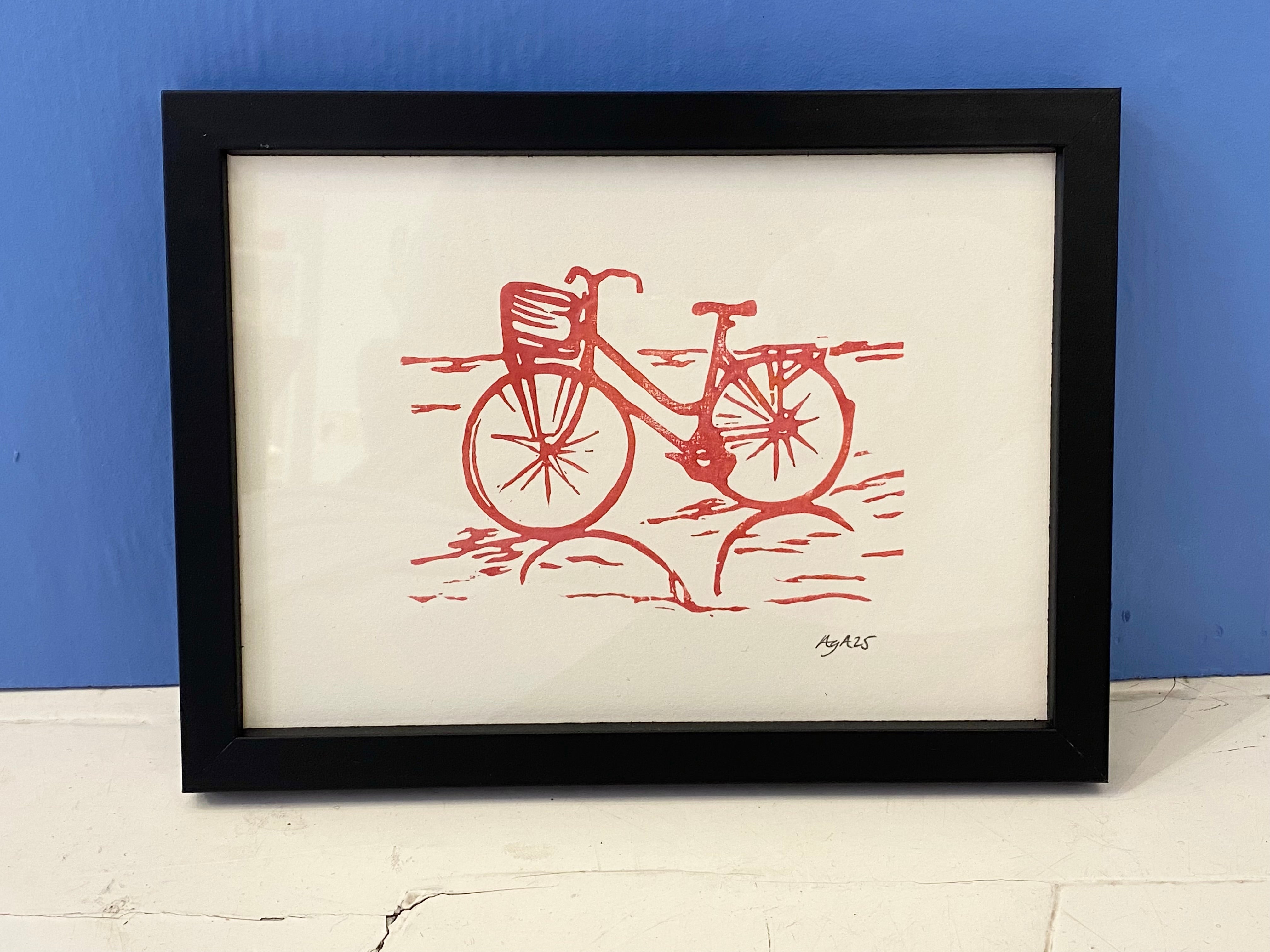 Damecykel linoleumstryk A5 blå