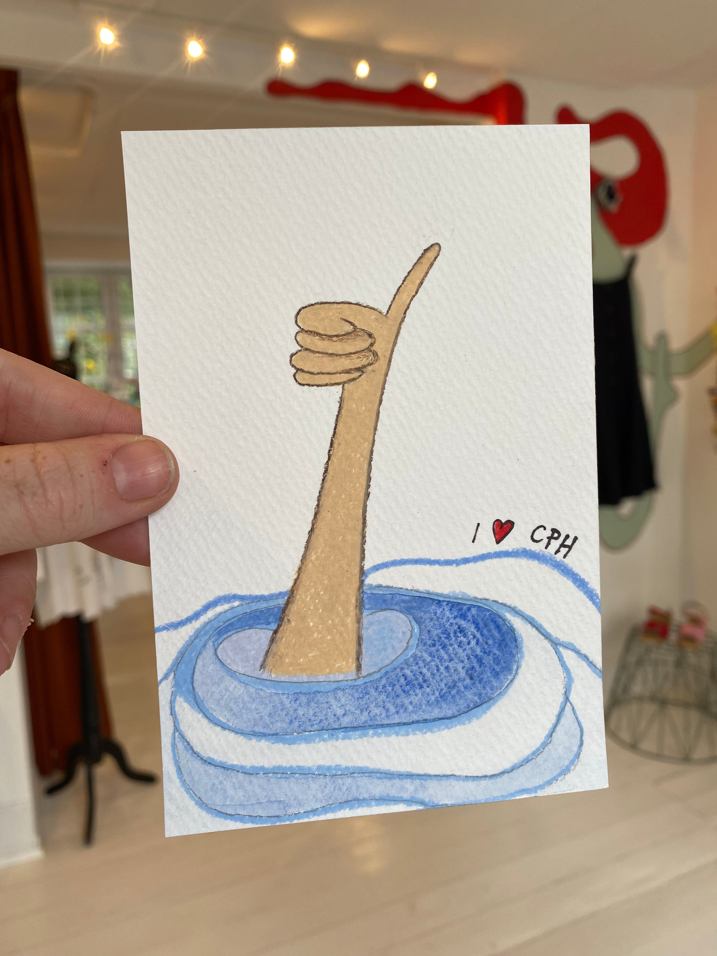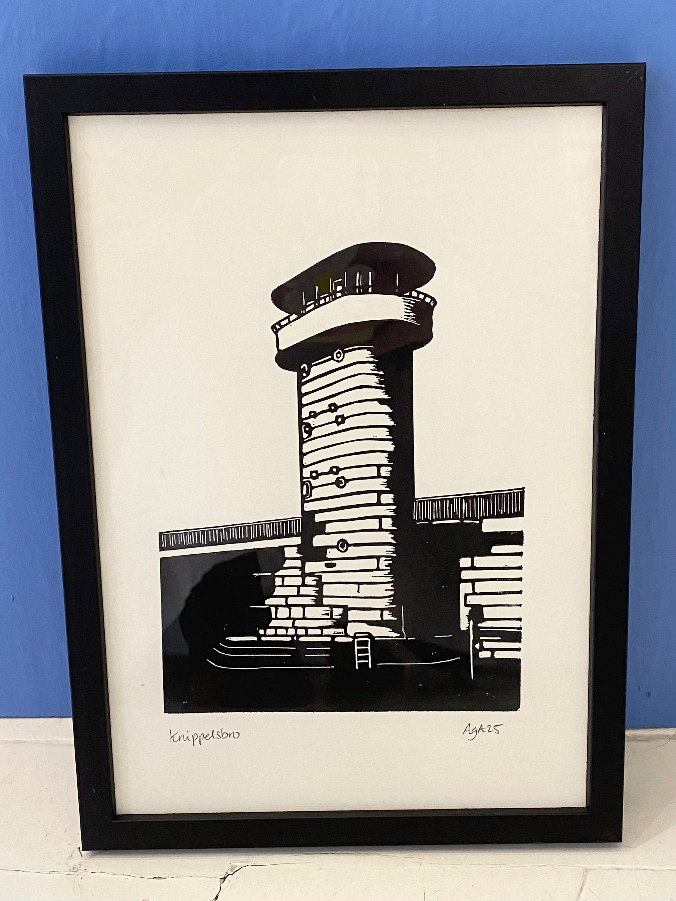 Cykel linoleumstryk A5 blågrøn