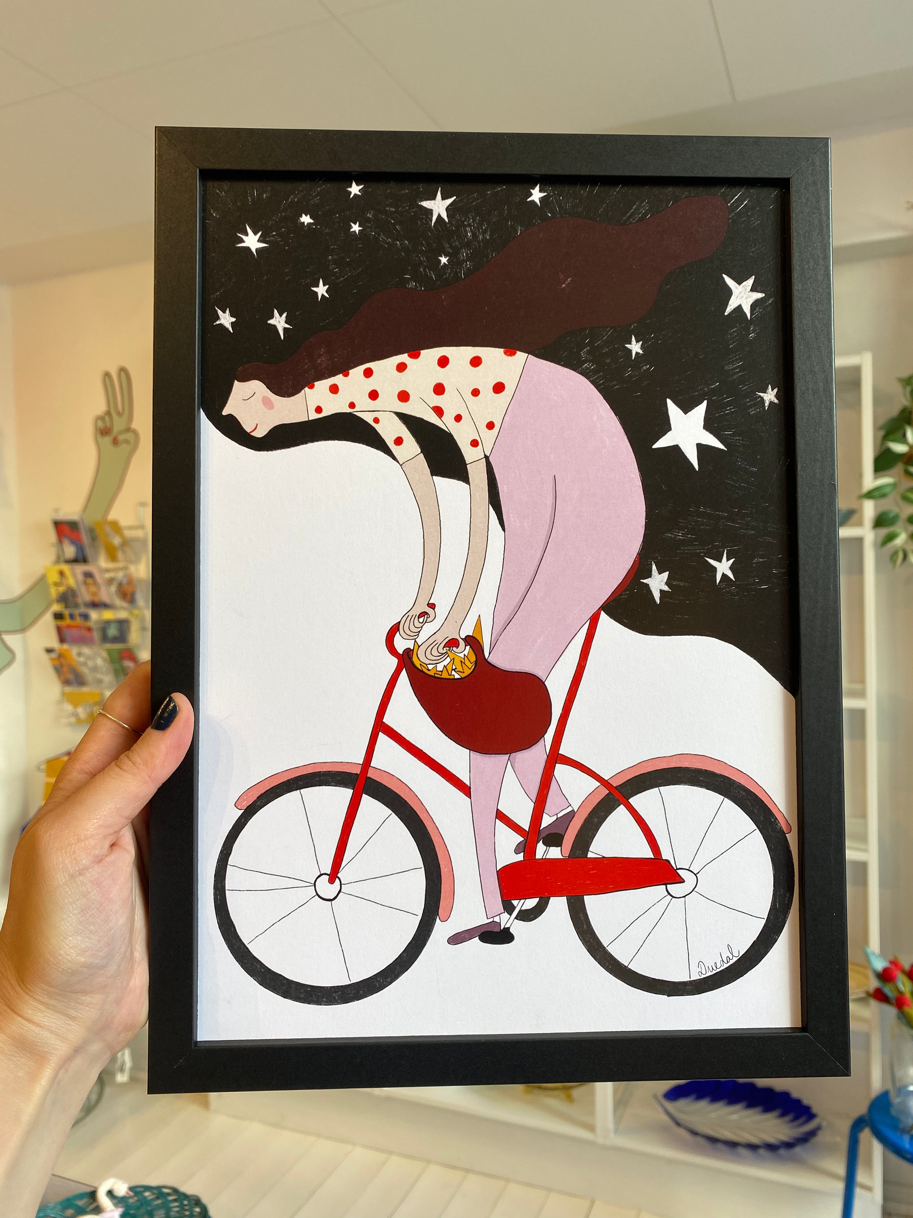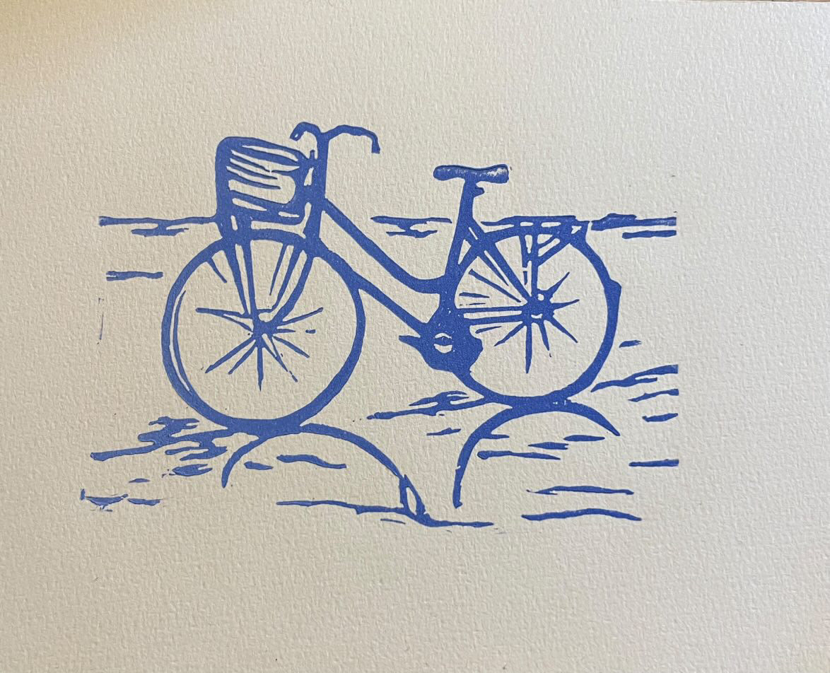 Damecykel linoleumstryk A5 blå