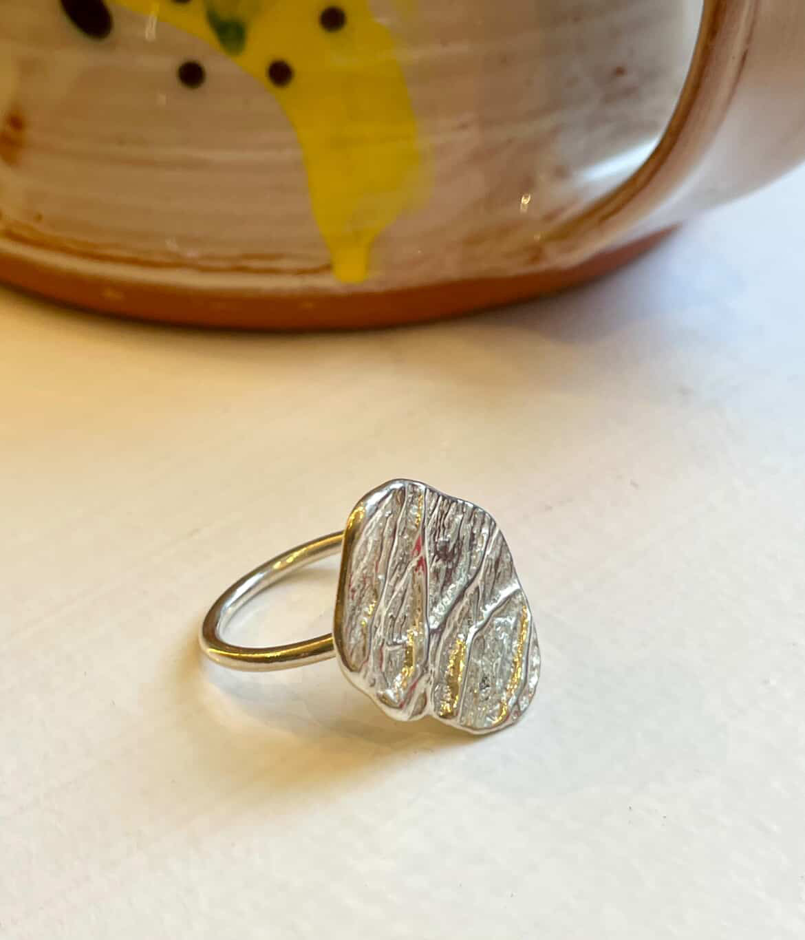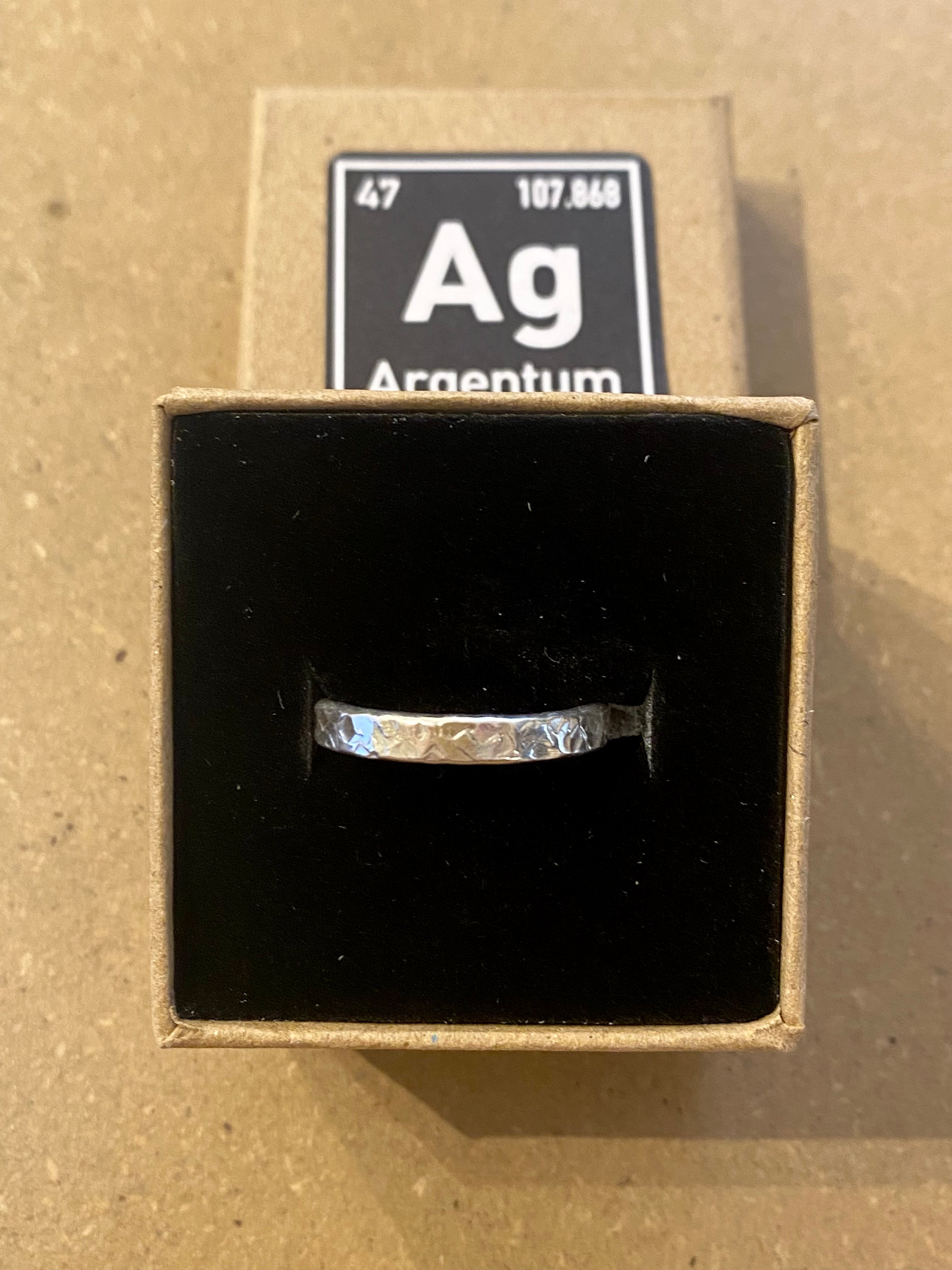 Firkantet hammerslået sølvring