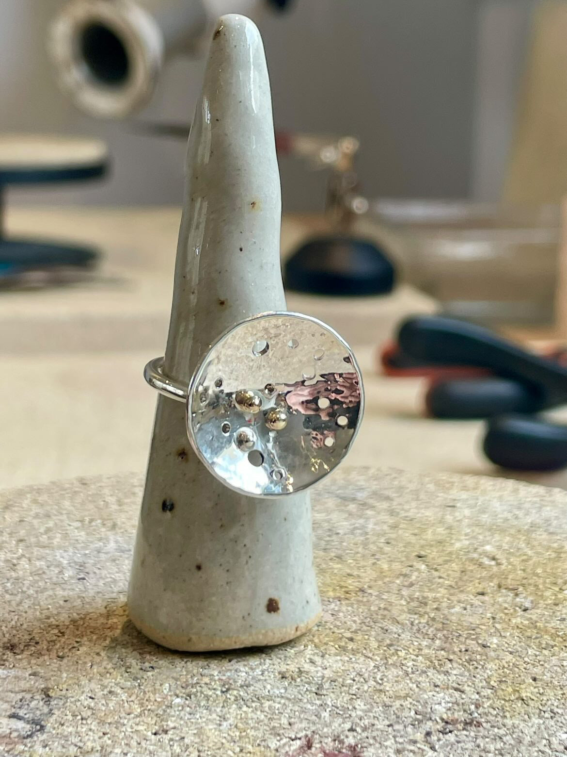 Sølvring med løs detalje