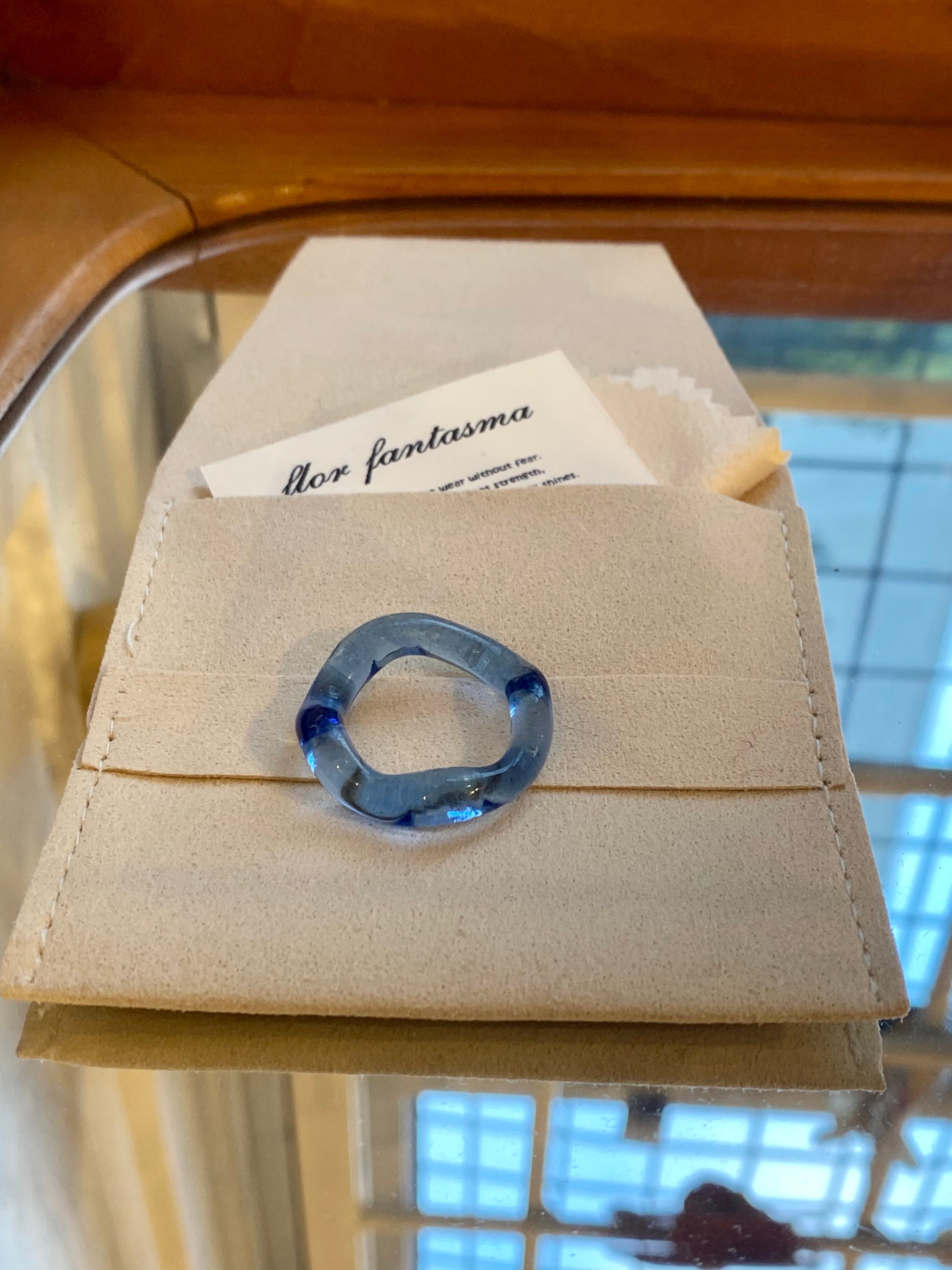 All Flor Fantasma rings are handmade in Mexico using 100% recycled glass. Each piece is shaped by hand, so slight variations in color, form, or texture make every ring unique. These differences are not flaws they are part of the beauty of handcrafted work.
