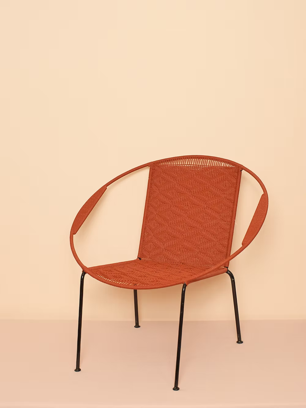 PRE-ORDER Håndflettet armstol - Lyserød/gul/rød