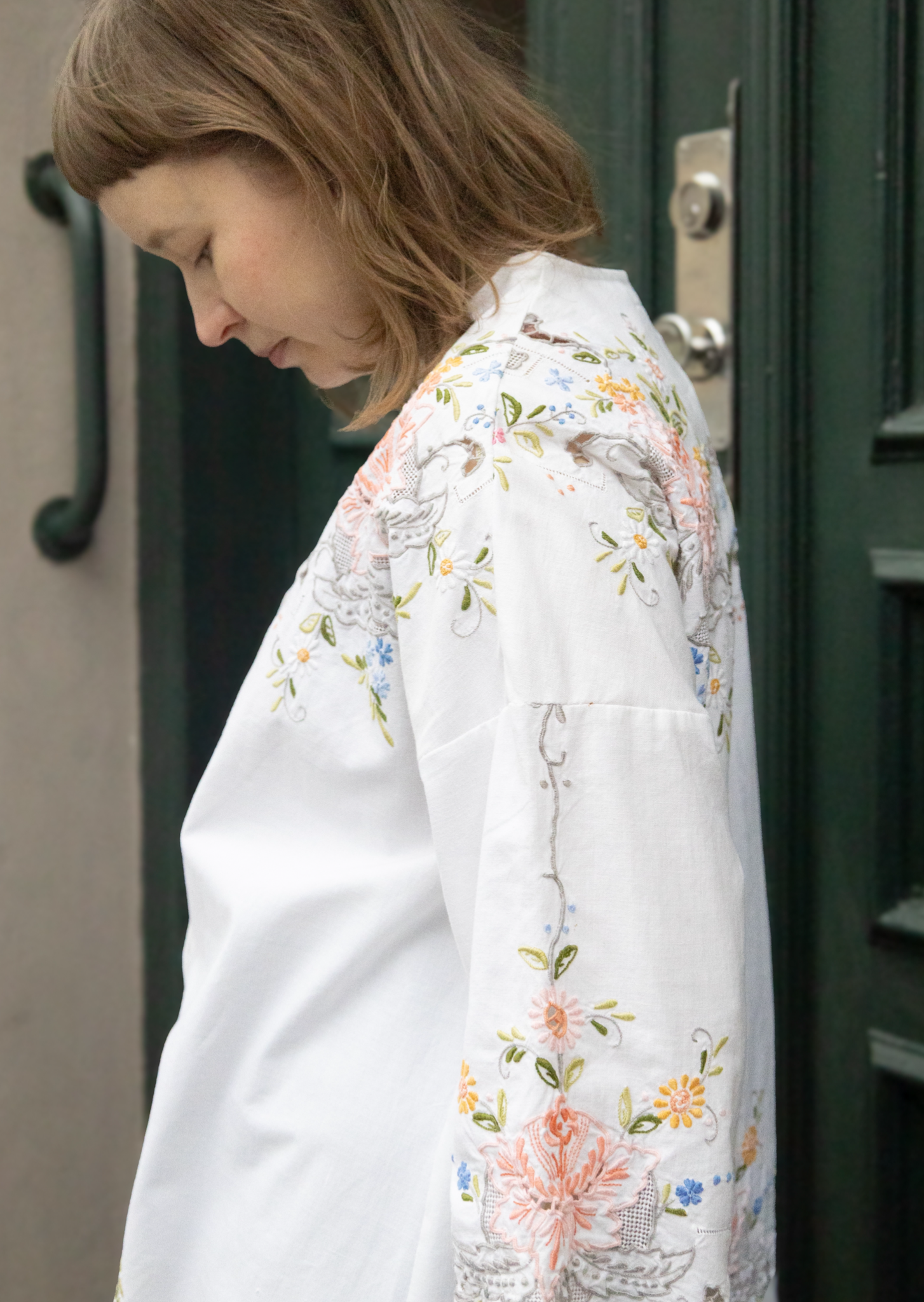 Hvid skjorte med broderede blomster