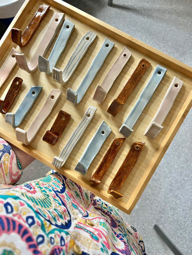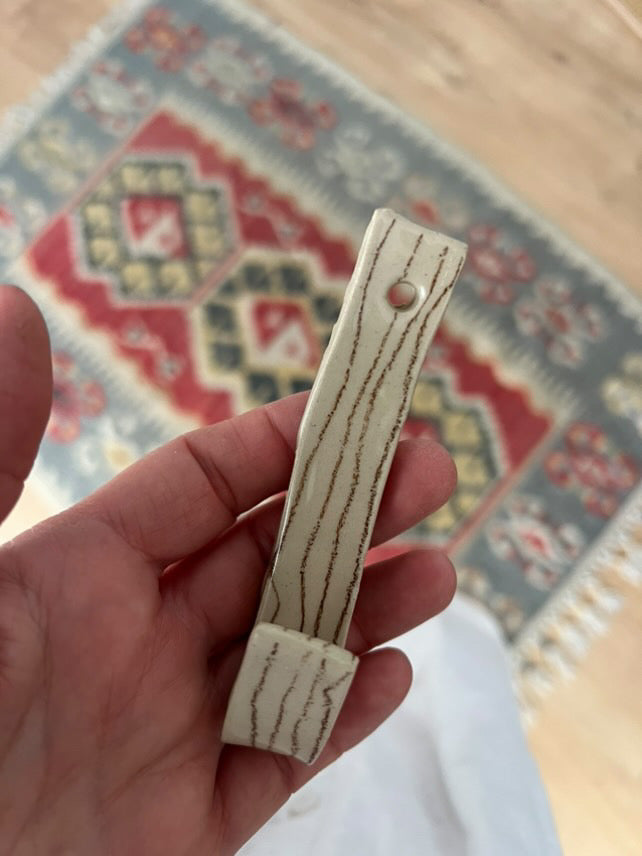 Unik håndlavet knage i keramik, med håndtegnede striber.