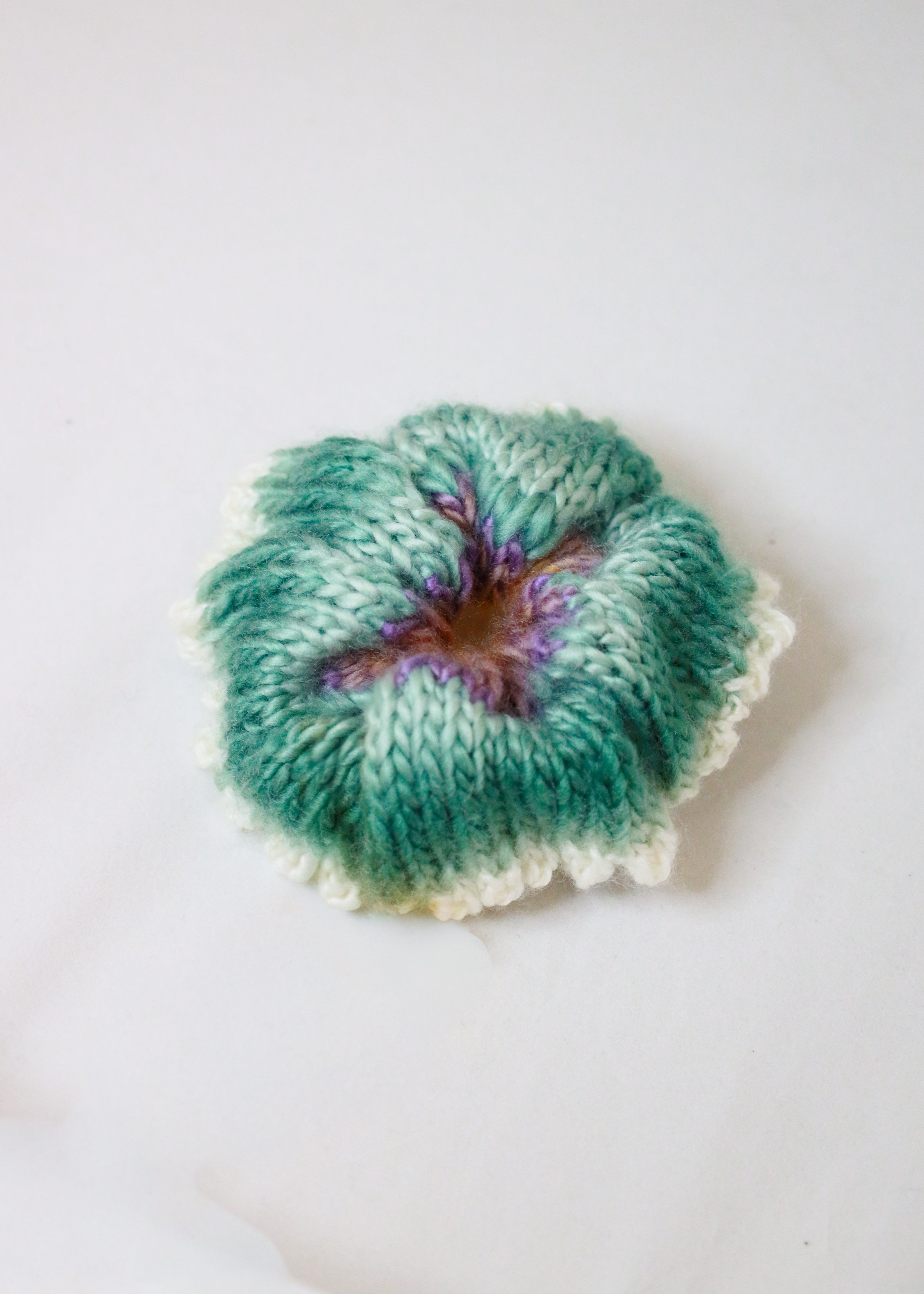 Håndstrikket scrunchie / hårelastik i upcyclet uldblanding med en solid elastik indeni.